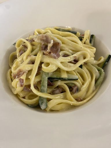 Read moreSolitamente non vado a mangiare nei posti che propongono la cucina tradizionale di cui posso gudere tranquillamente a casa, ma incuriosito da una recensione su Tik Tok e soprattutto del fatto che non conoscessi minimamente il posto nonostante sia aperto da parecchi anni, ho deciso di provare avendo un giovedì libero a pranzo. La torta fritta veramente buona,forse appena indietro di cottura nel mio caso ma perfettamente asciutta e gustosamente sfogliata come piace a me, il prosciutto crudo di ottima qualità anche se nel mio caso era all'inizio, molto buona la spalla cotta e il salame nella media,mentre la giardiniera devo dire che era forse la migliore che abbia mai mangiato. D'obbligo il tris di tortelli, molto buoni quelli di erbetta ,buoni quelli di patate con sugo ai funghi,mentre quelli di zucca che fortunatamente non sono dolci e pieni di amaretto Come i classici Mantovani, non mi hanno comunque entusiasmato. Sarebbe stata mia intenzione provare anche la punta al forno che purtroppo non era ancora pronta per cui mi sono dovuto accontentare di un vitello tonnato, non era male la cottura della carne ma la salsa un pochino troppo acida per il mio gusto e comunque a mio avviso insufficiente rispetto alla quantità della carne. Nonostante fossi strapieno ho voluto provare anche il tiramisù e devo dire che non era affatto male. Un 5 pieno Quindi alla qualità ,il servizio molto molto rapido ,forse anche troppo ma comunque attento ed efficiente. Una buona carta dei vini il cui ricarico mi è sembrato molto onesto così come anche i prezzi delle pietanze che vedono una media di €11 per i primi 15 per i secondi e 5,5 per i dolci. Credo proprio che dovrò tornare per trovare gli gnocchi con la pasta di salame e la...