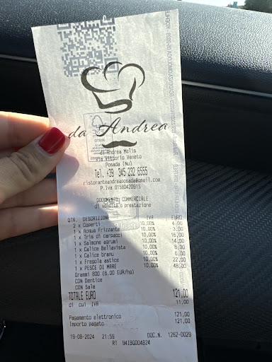 Read moreSe ordini due grigliate miste di pesce a 24 € cad sul menù, ti chiedono se possono portare un piatto unico per due e gli dici si, basta che sia equivalente a quello che abbiamo ordinato e alla fine invece che 48 € mi addebiti 138€ o sei imbroglione o prendi in giro la gente. In entrambe i casi non va bene. Non tornerò mai più. Pessimo If you order two mixed grilled fish for € 24 each on the menu, they ask you if they can bring a single dish for two and you say yes, as long as it is equivalent to what we ordered and in the end instead of € 48 you charge me € 138 or you are a cheat or you make fun of people. Either way it's not good. I will never go back. Very Bad