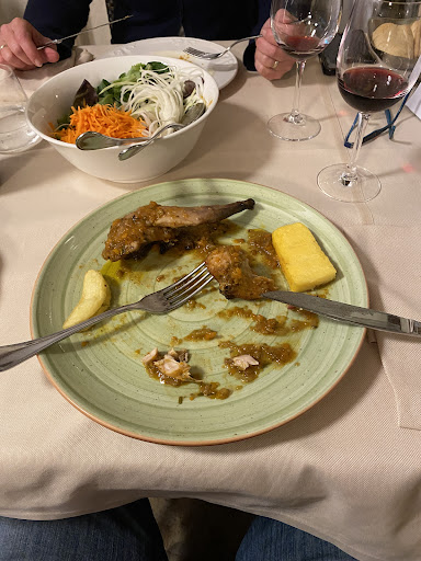 Read moreEin phantastisches Lokal mitten in der Walachei, dass einen Umweg in jedem Fall rechtfertigt. Die Tagliatelle mit Salbei waren außergewöhnlich gut, ein ganz feiner Geschmack. Genauso gut waren die Tagliatelle mit Kalbsragout. Zu dem sehr fein abgeschmeckten Kaninchenbraten gibt es als Beilage übrigens Polenta, was nicht auf der Karte vermerkt war. So hatte ich zusätzlich Pommes Frites bestellt, die aber so gut waren, dass wir sie auch aufgegessen haben. Der Service war sehr freundlich und aufmerksam: Es wurden zu jedem Gericht wie selbstverständlich 2 Teller serviert, da meine Frau und ich gerne teilen. Die Flasche Valpolicella Classico Superior hat uns so gut geschmeckt, dass wir an nächsten Tag gleich nach Sirmione zu Domini Veneti gefahren sind und reichlich eingekauft haben. Einzig dem Salat hat etwas der Pep gefehlt. Dennoch sind es auf jeden Fall 5 Sterne. Zum krönenden Abschluss gab es noch einen Limonenschnaps „della Casa“, was aber auch am guten Trinkgeld...