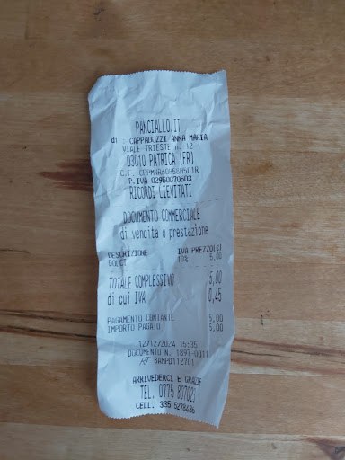 Avevamo avvertito che saremmo arrivati in gruppo numeroso per fare il Sentiero di Dante e la signora gentilissima ci ha fatto trovare al nostro arrivo il numero giusto di cornetti fatti apposta, vuoti o a scelta con la marmellata di visciole. Ottimi!! Al ritorno ci ha fatto il vin brulé e abbiamo comprato tanta ottima pasticceria. Il Pangiallo è buonissimo!! CONSIGLIATO! Metto la foto di solo uno degli scontrini per mostrare, come al solito, che è una recensione vera. Nella foto, il pentolone del vin brulé svuotato fino all'ultima goccia e qualche biscotto di...