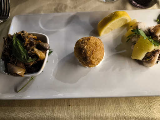 Read moreSono arrivata in questo ristorante facendo velocemente una ricerca sul web. Arrivo (come da prenotazione) ore 21 e ci hanno fatto accomodare subito, dopo di che il nulla assoluto..... Erano le 22 e chiedo almeno del pane che viene subito portato insieme ai menù. Degustiamo pane ed Acqua. Ordiniamo subito dopo. Decidiamo su un menù degustazione ossia con proposta di antipasto, 1 primo a scelta Tra 2 ed un secondo a scelta tra 2. Attendiamo altri 40 minuti per averlo ed ovviamente essendo quasi le 23 abbiamo richiesto altro pane. Antipasto a dire misero è poco... Allego video. Psssano altro 30/40 minuti per aver un assaggio di primo ( caserecce alla norma)... Buono. Concludiamo con un secondo che erano braciolette di pesce spada ( 3 pezzi)...che erano davvero brutte... Su 4 persone ( di cui 3 persone le avevamo ordinate, 1 solo le ha trovate gustose... Quindi le abbiamo cedute a lui). Esperienza Pessima.... Ci siamo alzati con la fame... Stremati dall'attesa pagando un conto SALATISSIMO. 60.00€ a persona per 4 cretinate mangiate in un lasso di tempo di 3 ore e mezza. Frequentando taaaanti locali mi permetto di consigliare al proprietario ( che per cortesia e gentilezza poteva fare la finta di avvicinarsi come di solito si fa... Anche per far finta di scusarsi per l'attesa) di rivedere più cose nel suo lavoro differentemente non avrà lunga vita. Per le ore di attesa oltre al coperto di 3€ (di norma il costo del coperto include anche il pane) .... Ci ha addebitato altri 3€ x le 3 volte (quindi €9) che abbiamo richiesto per l'attesa... Aggiungo che era un locale piccolino... Pochi tavoli... E non era di sabato SCONSIGLIO A GRAN VOCE.... I turisti non sono polli da spennare.... La invito a venire dalle mie parti e con quell'importo avrebbe mangiato pesce Serio e in quantità e tanto...