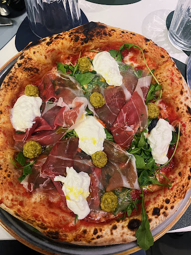 Read moreWe were a big group of people who tried to go to this restaurant on a Friday night with no booking. The waitress was super kind and managed to give us a table. The pizza menu is very diverse offering various options. The pizza pastry is very thin and light just how I like it. The atmosphere is a little posh for students but the waiters are nice. A little bit pricey...