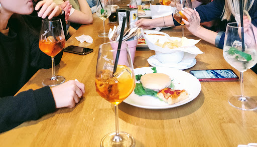 Read morePersonale totalmente impreparato. Un sabato pomeriggio,quindi ora di punta, la cameriera non sapeva che birre offrisse il bar e fin qui, perdoniamo. Successivamente due bicchieroni di spremuta sono stati gettati per errore da tale cameriera alla mia amica macchiando giacca, borsa di pelle, pantaloni, pantaloni del mio amico, e giacca di mia nipote. La cameriera a quel punto dice "mi scusi" e scappa dentro e dopo almeno 4 minuti torna fuori solamente con una spugnetta per pulire il tavolo e non offre nessun aiuto. Dopo aver cambiato tavolo, e aver aspettato altri 5 minuti di orologio un'altra cameriera ci chiede cosa vogliamo ordinare e le spieghiamo che vorremmo le stesse cose che ci sono cadute addosso. In bagno né tovaglioli né carta igienica per potersi pulire un po'... Infastiditi dalla situazione chiediamo il conto e il personale ci chiede 14 euro per queste 2 birre e 2 spremute, senza calcolare che la tintoria di giacca e borsa per togliere queste macchie ci costeranno almeno il doppio e la risposta del cameriere è stata "eh,scusi". spero chiudano presto per imparare a portare i vassoi ed...
