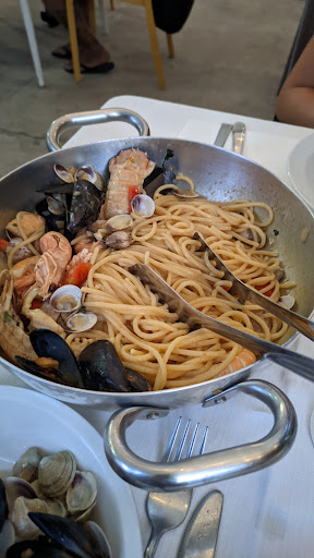 Non ho ben capito come funziona, nel senso che quello che doveva essere un primo per una persona è bastato per 4 (quella in foto è una porzione di pasta allo scoglio) e anche il fritto misto per uno l'abbiamo mangiato in 4.