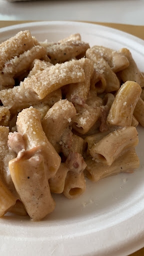Read moreTrovato sulla strada mentre ero in cerca di un buon posto dove mangiare, mi son fermato e ho notato che è un piccolo supermercato con cucina inclusa. Prendo una carbonara e scelgo cosa mangiare come secondo dal banco frigo gastronomia e macelleria, scegliendo una bella costata. Mi arriva la carbonara con l'uovo cotto che sembra della pasta con dentro una frittata. La peggiore carbonara mangiata nella mia vita. Poi mi arriva la costata che è molto buona. Il prezzo è abbordabile visto che la costata era bella grossa. Peccato per il primo. 3 stelle grazie a prezzo e costata...