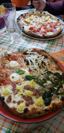 Siamo stati in questo locale a cena per festeggiare il nostro primo anniversario di matrimonio visto che eravamo in zona per un fine settimana di relax in spa. Il locale sembra carino per quanto abbiamo potuto immaginare visto che ci hanno riservato un tavolo nel corridoio interno che precede la sala più grande avendo un cagnolino ed essendocene un altro già in sala. Siamo stati serviti abbastanza velocemente considerando che era sabato sera e dentro avevano un gruppo di persone più nutrito. All'arrivo ci hanno offerto delle zeppoline che chiamano frittelle ed erano buone, mia moglie ha preso un arancino bianco che le è risultato non molto saporito e mancava di sale, per le pizze invece ho notato subito che mancava dal menu (anche del sito online) quella che avevo visto in una foto di un menù di 9 mesi fa ossia la Suprema (mozzarella, pesto di pistacchi, mortadella, granella di pistacchio) ma c'era solo la Pistacchiosa (mozzarella, pesto di pistacchio, speck, pomodorini) che poi personalmente avrei anche sostituito i nomi visto che la prima si può definire pistacchiosa ma non la seconda. Abbiamo chiesto al cameriere se si potesse fare visto che non era sul menù e la risposta è stata di sì senza problemi visto che ne hanno due versioni, una con mortadella e una no (ma allora perchè toglierla dal menù lasciando solo quella che tra l'altro ha meno a che fare col pistacchio se non per il nome ed il pesto di pistacchi?) e così ne abbiamo ordinate due. Premetto che il sapore complessivo era buono ma l'impasto lo abbiamo trovato un po' pesantino, non sembrava lievitato troppo bene e una piccola parte della mia era un po' bruciata sul cornicione mentre quella di mia moglie lo era un bel po' di piu in vari punti e anche un pochino sotto però la cosa più strana è la forma, entrambe avevano un lato con la punta che le faceva sembrare tipo una goccia e da napoletano sono abituato a mangiare pizze rotonde, non cambia il sapore ma anche l'occhio vuole la sua parte. Abbiamo pensato di prendere anche il dolce, cosa che non facciamo di solito, perchè il tiramisù del tavolo accanto era sembrato invitante ma per noi non è stato così. I savoiardi erano secchi e la panna ai lati era smontata, quel piccolo pezzo di cono ripieno era un po' gommosetto nonostante lo strato di cioccolata interno. Sembrava come se fosse finito e lo avessero rifatto da poco quindi per la fretta presentava degli errori, la porzione basta per due persone. I prezzi sono davvero onesti, i camerieri sono davvero gentili e il cibo non ci ha esaltato però nella valutazione del Servizio ho dovuto tener conto e togliere due stelle sia per la pizza non segnalata sul menù ma disponibile (io cliente devo sapere che prodotto offri e quanto costa) ma cosa ancora più grave è stata la mancanza di scontrino fiscale (non è il cliente a doverlo richiedere ma la struttura a doverla rilasciare automaticamente quando si effettua il pagamento in cambio del preconto non fiscale), potevo chiederlo ma ho preferito evitare e nonostante tutto ho lasciato anche la mancia per i ragazzi. Dovessi consigliarlo no, se dovessi tornarci forse per dargli una seconda opportunità su...