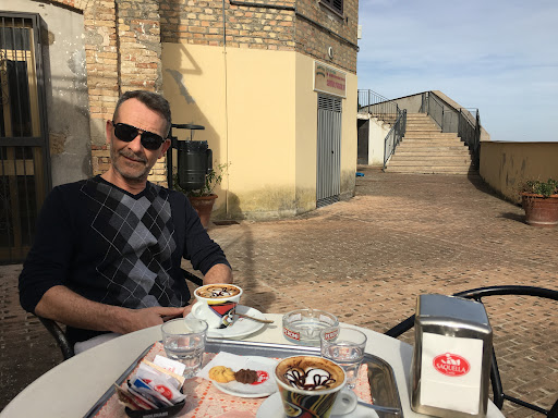 Of the two coffee shops/bars in Penne’s main square, this is the less fancy one, but its staff members are very friendly and it is slightly cheaper & as a consequence quite popular with students in the morning. The coffee is just as good as across the square and often presented with particular flair, though the ubiquitous complimentary pastries always given with coffee in Abruzzo are good, but often not exceptional. However, in the evening one often is given an impressive array of complimentary nibbles with an order of drinks. It’s particularly well suited for sheltered morning sun in the outdoor area in front and there are two tables in the back with amazing views toward the sea, though you may not see them from a seated position as the low wall on the walkway is just a bit too high for the view. It’s well...