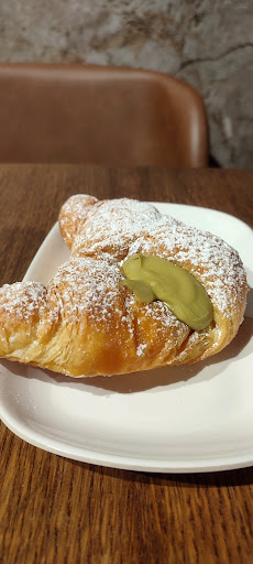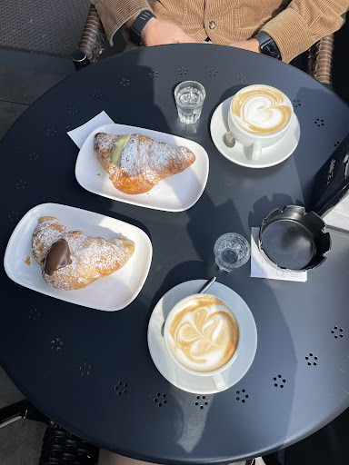 Io non facendo colazione Italiana in generale, raramente provo cappuccino, qua per la prima volta ho preso solamente un caffè e mi è piaciuto, però vedendo da vicino i loro brioche, me ne sono accorto della qualità e freschezza ed ho deciso di tornare, per la seconda volta ho controllato il latte che usano per il cappuccino e mi sono assicurato che non sia a Lunga conservazione e via... Devo dire anche la crema di pistacchio era proprio buona, leggermente salata ed eccellente la combinazione con brioche e zucchero a velo.