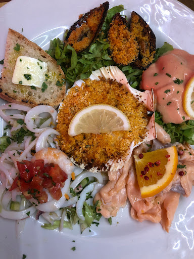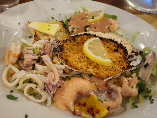 Read morelocale specializzato in pesce che si sta facendo conoscere per la qualità della cucina. Situato in una zona comoda della città è dotato di ampio parcheggio. L'arredamento interno è informale, il distanziamento tra i tavoli è ottimo. La pecca è che non esiste il menù, il titolare lo illustra a voce poiché ogni giorno lo cambia, ma i prezzi sono una sorpresa. Siamo stati in cinque ed abbiamo preso un antipasto di mare misto (abbondante), due impepate di cozze (buone), due taglierini con seppie e bottarga (squisiti), due gnocchetti con sugo di cernia (ottimi), una orata alla griglia (enorme per una persona - 800gr), due fritture miste di mare (deliziose), abbiamo poi terminato col dolce (un sorbetto al limone, una crostata alle noci, un profiteroles con panna, due zuppe inglesi). Abbiamo bevuto due bottiglie di acqua e due litri di vino della casa (decente). Infine abbiamo fatto servire cinque superalcolici (amari, grappe, rum). I dessert non erano all'altezza della cucina che si è rivelata eccellente. Il conto è stato di 39€ a testa, non esagerato ma nemmeno economico. Non posso dare il massimo dei voti perché non essendoci un menù non sai quanto spendi, e i dolci non erano indimenticabili. Per il resto ristorante consigliato e...