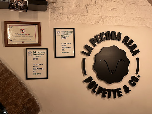 Read moreIl ristorante si trova posizionato nel Cuore di Perugia tra la fine della scalinata dello storico acquedotto medioevale e l'adiacente e bellissimo teatro Morlacchi. Il locale è un ambiente bello, riservato e curato, in vari momenti dell'anno come nel mio caso, offre musica dal vivo e raffinati Dj set. Alle volte in pietra risalenti alla civiltá etrusca, Offre anche un amabile terrazzino esterno. Che, specialmente nelle serate estive e di Umbria Jazz ti fa sentire al centro della storia di Perugina e mondiale. Non scontato, vista la sua posizione centrale, il ristorante è accessibile dai clienti in sedia a rotelle o a quelli con ridotte capacitá motorie. In quanto, ha la possibilitá dello scarico difronte l'ingresso. È adatto ad una cena semplice ed elegante, in coppia o tra amici. Il proprietario è una persona attenta, riservata, trasparente e molto cortese. Ispira le sue proposte di culinarie le polpette sopratutto, alla gustosa cucina che mangiava da bambino dalla nonna. Fatte rigorosamente a mano offrono diverse varietá di sapori, Umbri, ma ha anche proposte per vegetariani. Il personale è giovane veloce e attento ai bisogni di ciascuno dei clienti. I prezzi sono in linea con la qualitá delle materie prime dei prodotti offerti. Del buonissimo gusto non parlo perchè va semplicemente assaggiato. Dal calice per l'aperitivo alla spina per la birra ha diverse proposte per il bere. Sia dalla carta a tavola o giá nel menú esposto all'esterno sull' ingresso è possibile guardare le proposte offerte e i relativi prezzi in modo chiaro e trasparente Una utile curiositá: attaccata al locale c'è una piccola e leggendaria fontanella di acqua potabile buonissima, meta e premio di arrivo sopratutto nel periodo estivo, per cittadini, turisti e amici animali che risalgono le scalinate dell' acquedotto. Concludo dicendo che: Per chi vive a Perugia o per chi in massa la viene a visitare come turista, il ristorante, LA PECORA NERA per tanti motivi si...