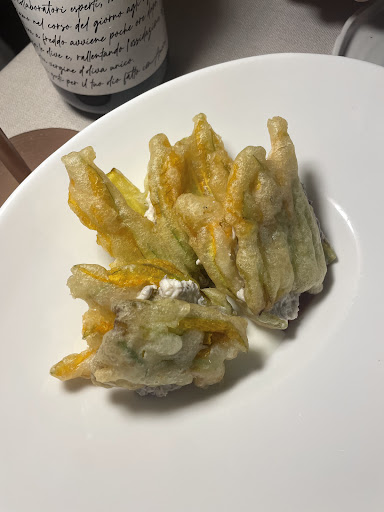 We had a wonderful evening at "Osteria i Birbi," which boasted a charming, rustic ambiance that perfectly captured the spirit of the city. The service was excellent—our waiters were attentive, courteous, and very friendly. The menu featured a compelling selection of unique and sophisticated dishes as well as a great selection of delicious wines. To start, we chose the Zucchini Flower Tempura with ricotta, olives, and a buffalo mozzarella cream tomato sauce. For our primi courses, we selected the Tortelli stuffed with "Pappa al Pomodoro" and the Taglierini with black seasonal truffle. Our main course was an Argentinian sirloin cut with rosemary oil, served with a side of ratatouille. The tortelli and the steak were particular highlights. We finished with two desserts: the Bavarian cream with apricots, peach mousse, passion fruit, crumble, and traditional balsamic vinegar drops, and the Fruit compote with ricotta cheese foam, almonds, and cocoa grue. Unfortunately, these didn't quite live up to the rest of the meal. While the food was truly excellent, we felt the prices were...