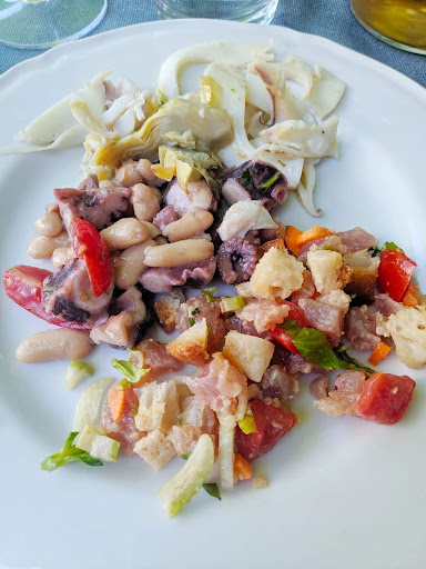 We were about to choose from the menu when the waiter/owner (?) proposed the "suggestion of the day" consisting of tasting various dishes. We actually liked the idea and went for it.