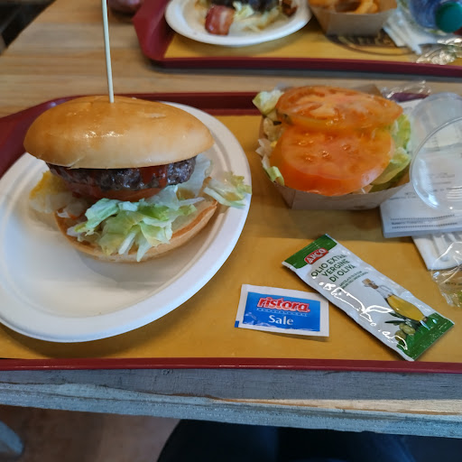 Purtroppo, il cibo non è stato all’altezza delle aspettative: gli hamburger di pollo erano insipidi e privi di sapore, La tagliata risultava piuttosto dura in alcune parti e quindi non gustosa e morbida come dovrebbe essere; Hamburger di Angus leggermente più gustosi rispetto ai due prima ma comunque sia non all'altezza del pezzo speso. Mentre gli Stick di mais (presumo) del fritto small (6,50€) erano ancora più insipidi del pollo di prima, sembrava di mangiare cartone. Giusto le cipolle si salvano.