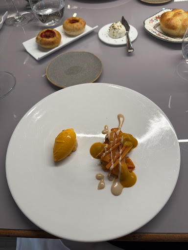 Parking feels like you’re abandoning your car on the shoulder of a minor highway. And once inside? Expect service with a shrug. My friend, a left-handed waterless wonder, had his place setting corrected wrong multiple times—because apparently being left-handed is a Michelin offense. To add sparkle to the chaos, the staff poured sparkling water into his still water glass like it was some avant-garde hydration roulette. Very experimental. Very… misguided.