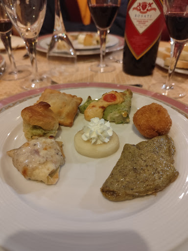 Read moreAbbiamo cenato qualche sera fa in questo ristorante immerso nel verde. Credo che il posto vada vissuto di giorno e nei periodi più caldi, dato l'immenso spazio verde intorno, ma comunque l'esperienza è stata carina lo stesso. Location rustica con un bel camino acceso e delle botti di vino a fare da sfondo. Ci siamo affidati completamente al personale, che ci ha servito in tavola un antipasto caldo composto da sfiziosità varie (vedi foto), delle tagliatelle al ragú con panna e tartufo, della carne grigliata, carne di agnello e bocconcini di vitello al tartufo. Il tutto molto buono e le porzioni erano abbondanti. Personale cortese e disponibile, il servizio è stato abbastanza veloce. Ampio parcheggio privato...