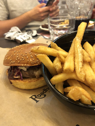 Read moreEntriamo in 3 per la prima volta al Roadhouse la location non è male, è carina e distintiva ma senza esagerare. L'antipasto a base di nachos con salsa fa ben sperare e da carnivori che quali siamo ordiniamo bbq ribs e hamburger. Peccato che dopo aver ordinato sia cominciata l'attesa, un'attesa che dicono sia dovuta al fatto che avevamo ordinato della carne al piatto (tecnicamente sarebbe il loro cavallo di battaglia) quindi boh vabbè. Vediamo passare camerieri con le pietanze che si avvicinavano e ci chiedevano se avessimo ordinato i piatti che avevano in mano, mentre invece erano del tavolo a fianco, a quanto pare il numero al tavolo è tecnica ormai in disuso ma sarebbe stata opportuna. Una volta finalmente arrivati i nostri piatti il mio amico nota qualcosa di strano nel suo panino ovvero che non c'era l'hamburger (mancava la carne) il cameriere una volta che glielo abbiamo fatto notare ha subito provveduto. Le bbq ribs a prima vista sembravano davvero appetibili, la carne era talmente morbida da poterla disossare con lo sguardo, ma purtroppo come sapore non aveva niente di ché, anzi dopo metà mi aveva già stomacato. La salsa bbq si sentiva appena non era caramellata sulla carne perciò non risaltava nessun sapore degno di nota. La salvietta per pulirsi le mani te la danno se mangi degli antipasti io che ho mangiato le costolette no, non me l'hanno data, evidentemente non ero degno. Le patatine di contorno non erano male affatto ma, diciamocelo, avessero sbagliato pure quelle. Come prezzi direi abbastanza giusti per le porzioni. In definitiva, probabilmente abbiamo beccato tutte le sfortune della giornata ma comunque sia recensisco quello che ho mangiato. Dare due stelle è poco ma darne tre...