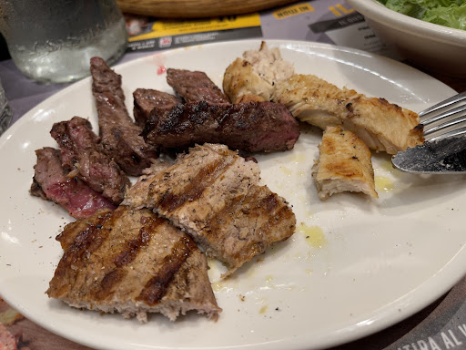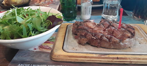 Esperienza e posto da dimenticare. Non credo possa essere definito un ristorante. Arrivati per una cena veloce e per sfuggire al freddo del luna park di Pian di Massiano risultato che dentro era quasi più freddo di fuori. Arredamento tipico da fast food ma passabile e in tema fin quando pensavamo di essere in un fast food. Ripeto arrivati con nessuna aspettativa e per consumare un pasto simil McDonald's. Menu super pompato da immagini che riempiono gli occhi. Ordiniamo l'equivalente di un paio di menù del MC cioè panino e patatine e in piu a parte una tagliata. Arrivano panini imbarazzanti e piccoli.. hamburger di maiale sarà stato al max 70/80gr e disgustoso sembravano i medaglioni Citterio. Patatine fredde. La tagliata (100gr di carne) messa su una pietra infuocata ma senza un mini semo di cura ne condimento sembrava lanciata sul piatto. Vado al bagno e su nessuno dei 2(uomini/donne)era presente un pezzo di carta igienica...per trovarla sono dovuto entrare di soppiatto in quello dei disabili. Andiamo a pagare sorpresa delle sorprese 75 euro in 3 per aver mangiato poco più di 2 menù McDonald's. 2€ di coperto ciascuno per avere una tovaglietta di carta (tra l'altro piena di pubblicità loro)0 e tovagliolo di carta (niente pane) e nemmeno il bicchiere perché arriva con la coca media al modico prezzo di 4,50€. Prezzo dei soli panini dai 12 ai 14€, patatine a parte 4,5€. Praticamente sommando panino patatine e bibita 23/24 € ripeto equivalente di un menu del Mc. Servizio gradevole senza lode e senza infamia da personale che probabilmente è incolpevole di quanto sopra detto. Unico a cui vale la pena fare i complimenti è il grafico che gli ha progettato il menù perché veramente riempie gli occhi con la foto di ciascuna portata che poi non corrisponde nemmeno lontanamente alla realtà del piatto servito. In definitiva prezzi da ristorante gourmet servendo roba di qualità inferiore a quella dei fast-food. Un ladrocinio a livello del Camogli in autogrill. Poi ci si chiede perché prendono piede ristoranti orientali e gli "all you can eat"???? ma sono nettamente superiori ultimamente offrendo anche ottima qualità o almeno hanno prezzi adeguati a ciò che ti offrono...onesti. Perugia si merita di più. DA EVITARE COME...
