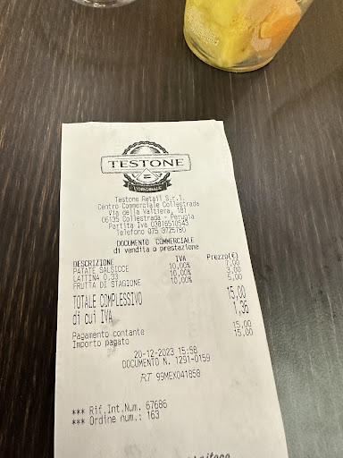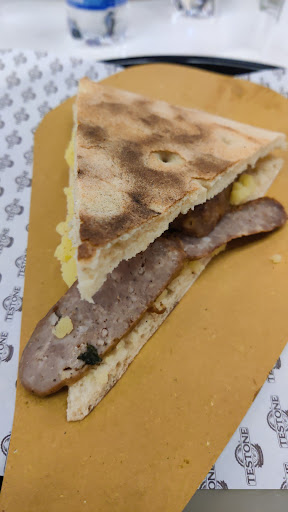 Mi dà l'idea che con il tempo - complice anche la grande espansione della catena - Testone sia calato un po' di qualità. Il punto vendita del centro commerciale Collestrada risiede nell'area ristoro centrale, di fronte e accanto agli altri ristoranti. Purtroppo come già accennato ho notato personalmente un calo di qualità nei prodotti rispetto a qualche annetto fa: la torta con le salsicce e le patate era insipida, poco saporita e decisamente fredda. Un po' meglio quella con il barbozzo, ma una torta al testo fredda resta decisamente difficile da mangiare (e da digerire). L'esperienza combacia con quella avuta nei punti della catena aperti più di recente, confermando a mio avviso il trend; mi auguro che Testone torni a puntare sulla qualità dei prodotti e della cucina, piuttosto che sulla velocità di servizio. Nulla da dire sullo staff che si è rivelato molto cordiale e sorridente nonostante la tarda ora. Consiglierei anche un po' di attenzione in più per quanto riguarda la pulizia dell'area ristoro dedicata (anche se sono cosciente del fatto che sia condivisa con gli altri ristoranti). Il menù resta comunque molto ampio, con prezzi modici e tanta scelta, e sono convinto che ogni persona possa trovare il piatto più adatto a lei. Buono per un pasto al volo mentre si...
