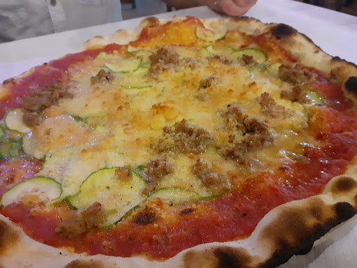 Volevamo mangiare una pizza al volo e tra le mille opzioni che offre il lungomare di Pesaro abbiamo scelto la prima pizzeria partendo dal porto. Rispetto ai locali della movida questo era praticamente vuoto. Ci siam detti "bah una pizzeria vale l'altra a quest'ora (le 21.00)" dopo una intensa giornata di sport. Siamo rimasti piacevolmente sorpresi da questa pizzeria. La base dell'impasto è la classica base fine scrocchiarella romana, ma il condimento è top, pieno, ricco e curato nei dettagli. Io ho preso una Baggio rossa (foto) con un mare di zucchine tagliate fini, salsiccia e grana al forno: sublime. Servizio veloce, personale...