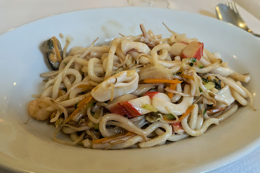It took me a while to find the restaurant tucked away behind the piazza. I was looking for something a little different from the numerous local seafood restaurants and this was perfect. The dining area is quite small and filled up while I was there. The restaurant describes itself as multi ethnic and the menu contains Chinese, Japanese, and also Peruvian dishes. There are a lot of vegetarian options and soups too. I had involtini, tasty udon noodles with seafood, and a jug of wine...