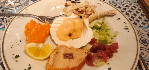 Read moreSono stato in questo ristorante per una cena con la mia compagna attratto dalle recensioni che lo elogiavano tra i locali rinomati e storici di Pesaro... Beh che dire o chi fa le recensioni è stato più fortunato di me o semplicemente non sanno che vuol dire mangiare pesce in un bel locale serviti e coccolati perché qui non è così! Ci accomodiamo in una saletta climatizzata dove faceva molto caldo... Vabbè... 20 min di attesa per avere il menù, la metà dei piatti scritti non era praticamente disponibile. Poi il vino bianco che mi è stato servito caldo anche dopo averlo fatto presente la prima volta...chitarra allo scoglio con pasta quasi cruda, scondita e insipida, con due cozze e 4 vongole buttate sopra e una coda di uno scampo... Se questo si chiama scoglio... Antipasto caldo porzione risicata ma tutto sommato il pesce era fresco(almeno quello)... Non abbiamo ordinato nient altro e finito il cibo c'è ne siamo andati a mangiarci una pizza perché rimasti delusi e con la fame... Ah dimenticavo. 1 antipasto 1 calice di vino caldo e uno spaghetto in bianco con due cozze e 4 vongole 50euro...state alla larga consiglio mio personale. Ci sono molti altri locali dove mangiare bene e spendere...