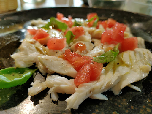 Read moreLocale posizionato lungo S.S 16 Adriatica tra Fano e Pesaro. Ambiente un pò datato anni 80/90, climatizzato e senza spazi all'aperto per i commensali. Tutto sommato però abbastanza ben tenuto. Ampi spazi tra i tavoli. Il gestore che ci ha accolto con garbo, ci ha suggerito senza menù, a voce, di assaggiare i loro antipasti in carrellata e vedere successivamente altro.Gesto apprezzato, senza spingere il cliente a ordinare oltre il dovuto. I piatti erano piuttosto semplici, non elaborati, ma si sa che il pesce fresco non ha necessità di grosse lavorazioni . Tutto gradito,forse un pò meno le cozze gratinate che avevano un sapore un pò più marcato di quanto dovuto.Tutte le portate vengono offerte in un piatto diverso, le porzioni più che sufficienti, si consideri che ogniuna di esse costa mediamente €5, pertanto la carrellata 30 € totali. A seguire tagliolino allo scampo,bene la quantità e cottura. Il cestino del pane era semplice, con qualche quadretto di pizza bianca, nulla di più, forse una piadina a spicchi poteva essere gradita, ma è un particolare soggettivo. Pertanto SI:pesce fresco, servizio, accoglienza. NI: locale un pò datato e senza spazi all'aperto, prezzo leggermente alto. NO: cassonetto fuori del locale molto maleodorante, deterrente per potenziali clienti da spostare sicuramente e trattare con...