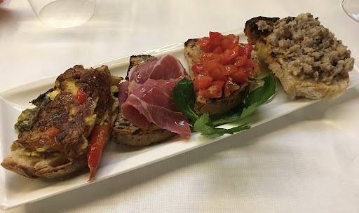 probabilmente, era parecchio affabile. Ma andiamo avanti... Terminiamo gli antipasti (nella norma niente di speciale, nulla che non si possa mangiare in un qualunque altro ristorante abruzzese a costi decisamente inferiori )... Arrivano i primi.... Porzioni abbondanti ma.. Il mio sughetto pomodorini era un passato di pomodoro in bottiglia leggermente annacquato e salatissimo, con qualcosa dentro che sotto ai denti scricchiolava come fosse guscio d'uovo, non mento se dico di aver mangiato davvero solo per fame. Non ho preso il secondo ma mentre gli altri mangiavano un po'di agnello ho assaggiato delle patatine fritte tagliate a mano da loro, ma talmente spesse che dentro erano crude e fuori molle. In tutto ciò troviamo dei prezzi da ristorante di medio-alto livello circa 55 euro a testa per un complessivo di 220 euro per 2 antipasti 2 bruschette, 4 primi, due mezzi primi, agnello x 2 persone 1 patatine 4 dolci e due amari. Servizio assolutamente inadeguato,poco professionale,distratto poco cordiale, dopo 35 minuti Passati da quando il cameriere ha tolto i piatti dell'ultima portata mi sono dovuta alzare io per chiedere che dolci ci fossero. Capisco la difficoltà nel portare avanti un 'attività in proprio (Qualsiasi essa sia) , rispetto I sacrifici della categoria,ma ci si sta allontanando dalla bella strada intrapresa dopo la perdita dell' anima di questo locale. Mi permetto tutto ciò perché è stata tanta la delusione su tutti i fronti. Pochissimi anni fa nel menu erano presenti piatti più elaborati, particolari,soggetti a modifiche era un piacere andare lì, vista anche la gentilezza e l'estrema professionalità del personale,sempre educato e disposto ad accogliere e accontentare il cliente. Non so cosa sia successo nel mentre, ma suppongo vada cambiata la rotta. Aderire ad un menu '' povero'' abruzzese, composto di bruschette, cipollata, pallotte, peperoni e uova ecc dovrebbe prevedere anche una modifica del listino prezzi, invece con il menu meno vario e più semplice i prezzi sono rimasti quelli peggiorando anche la qualità del servizio. Ricordo con affetto questo locale perché appartiene ai ricordi d'infanzia e di gioventù pertanto è stato un grande dispiacere constatare tutto ciò. Spero che la prossima modifica la facciano sul menu o sui prezzi, ma soprattutto sull’atteggiamento del personale. Inutile continuare ad innovare un locale a livello estetico tralasciando ciò che in un ristorante fa davvero...