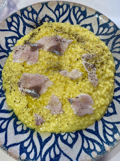 L’ambiente è elegante, curato nei minimi dettagli dalle tavole ai tappeti agli arredi, ma di quell’eleganza non distaccata, che ti permette di lasciarti andare a quella chiacchiera in più con il vicino o il personale. Il personale è assolutamente preparato, con attenzioni che si notano sempre meno (ahimè). Luca, il gestore nonché Chef, trasuda passione da ogni sguardo e attraverso ogni parola. Oltre ad essere estremamente cortese e alla mano. Infine i piatti, che dire, sono eccezionali. In alcuni casi si tratta di rivisitazioni di piatti classici (come In Fondo al Mar, l’insalata di mare che da Materia Prima, oltre ad essere un piatto ricco in quantità e varietà, ha il vero sapore del mare grazie alla cottura a vapore che conserva tutto il sapore del pesce). In altri casi invece, si tratta di creative invenzioni da cucina (come lo Spaghettone, un piatto così equilibrato da farti strizzare gli occhi, come pochi ne ho assaggiati). Quello che accomuna la cucina di Materia Prima è il sapore del mare, l’autentico sapore del pesce: abbiamo assaggiato tante preparazioni diverse tra antipasti (3), primi piatti (2), secondi piatti (2) e addirittura i dolci (3 e tutti fatti in casa, e che ve lo dico a fa!). Abbiamo mangiato tanto ma ci siamo alzati “sazi al punto giusto”, perché l’utilizzo di olii esterni è moderato, e al loro posto vengono usati condimenti ottenuti dai sughi dello stesso pesce, tra bisque, riduzioni, spume. Un ristorante di mare che sa di mare ❤️ Grazie e complimenti, a presto per continuare il tour!