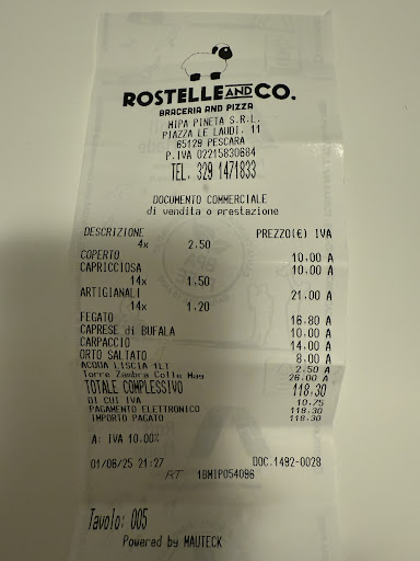Read moreHad a wonderful lunch in Rostelle during our Easter holidays. Came in around 12:30 without a reservation and didn’t have a problem to find a table. For starters we tried a bruschetta, as well as arrosticini and cacio e ovo, the latter both local specialities from the region which we thoroughly enjoyed. Followed by pasta carbonara and chitarina alla teramana. The food was great, the staff lovely and attentive and the price very reasonable. A great find in the pleasant residential...