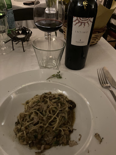Read moreWe have eaten here several times, and every time is excellent. The menu is abruzzese, but with many interesting twists and original dishes, and anything you order should be tasty. Most recently, we had the arrosticini e pecorino dolce di altri grigliato and a white bean dish as antipasti; gli strangozzi alla borbonica as a primo; la frittata sublime and a grilled or roasted veal dish as secondi; lo zabaglione caldo al marsala and the forte e gentile as dolci; and a nice bottle of cerasuolo. The antipasti were tasty and perfectly spiced; the veal was perfectly tender and perfectly cooked; the frittata melts with goat cheese; the desserts are sublime. Quick and professional service, cosy atmosphere, and extra points for having printed menus and playing classic jazz music (rather than the tuneless and soulless club music that many otherwise good restaurants in this area play). Definitely make a reservation in advance, as they are usually fully booked at least a...