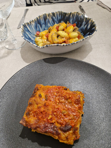 Primi: ●Orecchiette con le vongole: orecchiette un po gommose. Le vongole? Tantissimi gusci vuoti e 6/7 vongole solamente. Ridicolo. Pasta completamente slegata. Voto Zero. ●Pasta con seppia ripiena (specialità della casa): pasta condita con un sugo di pomodoro e (mi pare) ricotta salata, con una seppia ripiena a lato. Il sugo era molto, molto acido e si sentiva solo il sapore della ricotta salata. La seppia (contenitore) era poco saporita ma tenera; la seppia (ripieno) erano i tentacoli con cosistenza praticamente "gomma". Anche un principiante sa che si devono cuocere un po prima di usarli come ripieno, per avere una giusta cottura anche nel ripieno. ●Gnocchi tartufo nero e gamberetti. Gamberetti: non pervenuti Forse il miglior primo, anche se gli gnocchi erano troppo asciutti. Il tartufo e la crema di formaggio comunque azzeravano completamente il sapore di quei due poveri gamberetti messi sopra. Un piatto completamente sbagliato nel concetto e nella realizzazione.