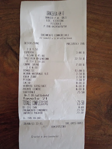 Read morea terrible place if you with a family and small children. we have reached there at 21h, stayed in line to order the meet about 30 minutes that got a table where we waited for another hour to receive something to drink...finally at 23:10 we received 5 pieces of arrosticini and at 23:20 the rest of the order. a total mess and a complete lack of respect from the lady where we paid (a LOT for a few pieces of meet)... witch said that we are in holidays anyway... KM0... 0 service quality ... will never go...