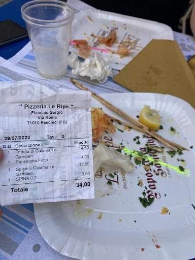 We came across this place 4 years ago when we were visiting this area. We had THE BEST panzerotti we have ever had! (My husband is from Italy)🇮🇹. For 4 years we have been dreaming about it and couldn’t remember the name of the place, we came back to stay in Peschici just to find it! We are so happy we did! They are just as good as we remember them! Everything on the menu that we had was amazing, but the star of the show for us is the panzerotti! Thank you, Pizzeria le Ripe for bringing us joy!! 🥰 (oh, and we are only here for two days and have already visited twice! I have a feeling tomorrow will be a to go day!!🤩😜) oh, and the staff,...