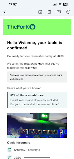 Non risponderò a quanto detto dal cerotto, quando vi fanno dei controlli in cucina e vedono come è gestita vedrete.. riguardo alla prenotazione, ecco la foto della richiesta tramite The Fork del tavolo sia nel ristorante che nella disco.. grazie per la vostra risposta gentile!