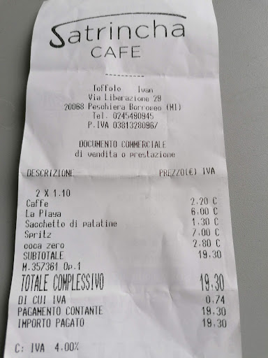 Read moreEntrare in un bar e sperare di chiedere un caffè prima di andare a lavoro sembra quasi un miraggio. Abbiamo aspettato quasi dieci minuti per chiedere un caffè e di tutta risposta ci è stato detto che è il primo maggio pure per loro! Se non hai voglia di lavorare, tieni chiuso Ovviamente non rimetteremo mai più piede in questo posto e tutto questo lo si deve alla maleducazione della signora che c'era dietro al banco. Villana, cafona...