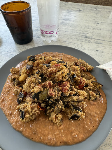 Fast forward a few days: we decided to give it another shot and made sure to arrive well within the lunch hours(which we now knew because of our last visit. Again, no info on this online). The lady serving us was very nice and helpful, so keep that up! We decided on some pasta and a chickpea omelette with veggies along with some fresh fruit juices. The omelette was quite good. The pasta was a little disappointing, since it was basically pasta with pieces of tofu sausage and some mayo - not terrible, but not great either. Both servings were kind of small, so calling them a meal would be stretching it. I also found the pricetag quite steep at 45€ for two very small portions and two glasses of juice. Overall, I think it's great that more and more vegetarian and vegan places keep popping up and I've got a feeling the ladies running this place believe in the cause, so that's great. At the same time I feel like customer-orientation could be improved on. Please learn from this and maybe serve more than just bottled drinks after lunch - or just close shop after that, I suppose. Also, either improve the size of your meals or lower the price, 45€ are a bit much for...