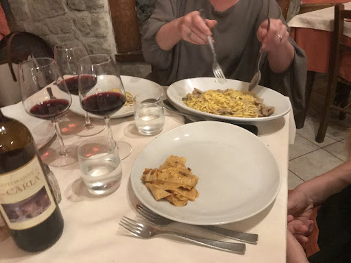 anche se non l'avevamo esplicitamente richiesto avremmo voluto condividere prima i tris di primi e dopo la carne, anche se ci è stato portato tutto insieme: perfino la cameriera giovane nonchè a suo dire anche la cucina erano perplessi sul fatto di portare primi e secondi insieme ma nessuno si è preso la briga di contraddire la cameriera di mezz'età