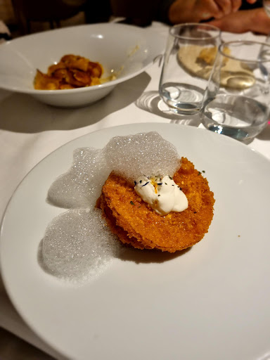 Read moreA posteriori devo dire che la mia esperienza parte male già dalla prenotazione dove mi viene detto che potrò fare il 'turno' delle 13 o delle 14.30.... ma che siamo in fabbrica? Arriviamo e il locale era freddo tanto da costringerci a restare con la giacca, ma ci sta... è tutta colpa di Putin... Ordiniamo 2 antipasti e 2 primi, neanche il tempo di andare in bagno a lavarsi le mani che arrivano gli antipasti evidentemente non preparati al momento, ma ci stà abbiamo pensato.... dobbiamo fare spazio al turno delle 14.30... A ruota arrivano i primi, la chitarra al pecorino era scotta, fredda, insapore, le pappardelle al cervo solo fredde e scotte.... In questi locoli (con primi a partire da 18€) ho sempre pensato di venire a fare un'esperienza di gusto e non solo per mangiare, ma qui siamo ben lontani anche dalla ristorazione più basilare... Non contenti decidiamo di farci del male con il dolce al cioccolato e gelato dove veramente abbiamo toccato il fondo, una ciambella secca sbriciolata con del gelato a caso, ma veramente???? Ligi al dovere abbiamo liberato il tavolo ben prima delle 14.30 per altri sfortunati avventori, ma sicuri di non...