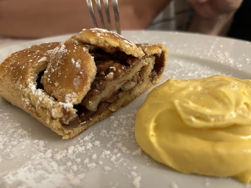 Impossible to reach by phone so we tried our luck and passed by. The atmosphere and location are prime, service is exceptional despite the hectic scene during peak hours so it is something to note and praise. Late night dining welcome. Wine selection is great, and nice to finally see simple mountainside cooking. There are half and fill portions - definitely opt for the half even if you're starving. Order smaller and more portions for a better experience. The tagliolini cacio e pepe with black truffles was tasty but rather heavy, ravioli with gorgonzola, ricotta and pears was lovely. Apple pie was great - again half portions are the key. Didn't get to second course so.. The rest is the ambiance and...