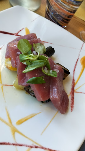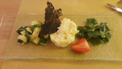 Read morePiatti gustosi e leggeri. Si sceglie tra carne, pesce o vegetariano.🍅 Dopodiché ti chiedono se vuoi il piatto unico (che ti descrivono) o il menù degustazione a sorpresa (2 portate, che con un piccolo sovrapprezzo possono diventare 3). Inoltre, per il menù degustazione, visto che è a sorpresa, ti chiedono quali ingredienti non ti piacciono o a quali sei allergico /intollerante. A me nel menù degustazione hanno portato: carpaccio di ombrina con asparagi crudi e fragole con sopra olio e sale rosso. A seguire: trancio di ventresca impanata col sesamo su un letto di purè di frutta (albicocche penso) e zucchine grigliate. Tutto ottimo. Nel prezzo della degustazione è compreso anche un calice di vino bianco. Io avevo preso due portate degustazione più il dolce per un totale di 27,00 €. Direi che è un prezzo buonissimo, considerando anche che la qualità della cucina e degli ingredienti è davvero alta. Consigliatissimo, ma non...