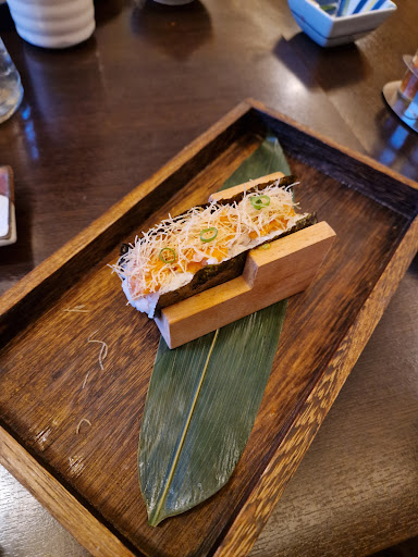 Salmon nigiri (sushi) 4.5/5 - very good. Good cut. Would be hard to find better.