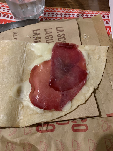 Nice piadinas (kind of tacos from Italian regional traditions) and other similar regional food; quick service comparable to fast food (!) but everything is cooked and prepared at the moment (!!!); price of this type of food is generally cheaper compared to other types of food/service (there is no table service) and you will hardly find ingredients of this quality in piadinas...
