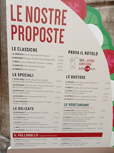 Le piadine sono molto buone e gli ingredienti, nella maggior parte dei casi, sembrano essere di buona qualità. Tuttavia, le quantità all’interno delle piadine variano sensibilmente a seconda del giorno: a volte sono ben farcite, altre volte decisamente meno. Questa mancanza di coerenza lascia un’impressione di poca cura.