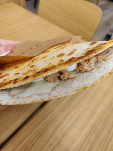 Read moreUna delle tante sedi di questa ormai famosa catena di fast food, situata comodamente in via Martiri della Resistenza. Il locale presenta dei totem per ordinare più velocemente e ha un'ampiezza standard per La Piadineria. Le ragazze dello staff sono molto cordiali con tutti i clienti, e anzi è stato grazioso vederle interagire con gli habitué. La piadina era eccellente, generosamente condita com'è giusto che sia. Apprezzo che ci abbiano dato tanti tovaglioli per la nostra consumazione, ma credo che l'azienda dovrebbe prendere in considerazione la possibilità di dare dei vassoietti a disposizione del cliente, per non poggiare gli alimenti direttamente sul tavolo. È chiaro come la pulizia sia abbastanza frequente all'interno del locale, ma non è comunque il massimo dover utilizzare dei tovaglioli come tovagliette per evitare il contatto delle piadine col tavolo. Nonostante ciò, si è trattata di una buona esperienza. Ne siamo uscite...