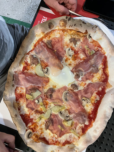Perfect location, perfect environment, delicious pizza, good behavior, Fresh material, Everything...