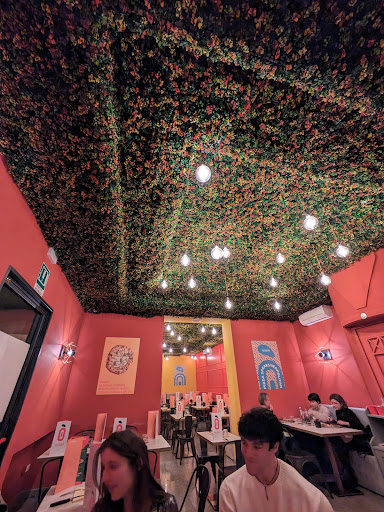 Read moreNon so con quale buona volontà abbiamo voluto dare una chance a un altro Vasinikò dopo la deludente esperienza di Cremona. Forse credevamo che le cose sarebbero state diverse. Che forse, dal momento che avevano aperto da poco, si sarebbero impegnati di più. Cavolo, se ci sbagliavamo. L'impasto ha sempre lo stesso problema: pur non essendo la pizza bruciata sotto, il sapore che rimane dopo le prime fette è sempre quello di bruciato. Esattamente come a Cremona. Poi a questo aggiungiamo il fatto che lo staff non fosse per niente coordinato, tra camerieri imbranati e ordini lentissimi ad arrivare, e miglioriamo in peggio l'esperienza. Neanche l'ambiente è dei migliori, dal momento che la scelta cromatica delle pareti risulta un pugno nell'occhio. I colori, infatti, sono decisamente troppo intensi. Do due stelle e non una perché, malgrado questo, la pizza pork era molto buona, forse perché l'insieme di straccetti, chips e cheddar era talmente forte da sovrastare tutto il resto. Un vero peccato, quindi, perché ciò dimostra come le idee nel menù ci siano e in teoria funzionino bene. Il problema è il lato pratico. Quindi dopo un'esperienza del genere, tirando le somme non ci ha fatto piacere pagare un conto abbastanza salato, che di certo si addice di più a una pizzeria che propone prodotti di maggiore...