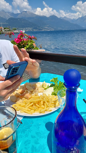 Read moreTasty food but shocking service. This restaurant is beautifully situated on the lake and we made a reservation which is advisable to ensure a table overlooking the lake. We ordered the risotto with perch fillets which was delicious. Unfortunately the whole experience was let down by the extraordinarily poor service from the waiter covering this area. Having served our food that was the last we saw of him. We were left with our empty plates on the table for over 1/2 an hour. I’m certainly not a fan of rushed service but I’d at least like the empty plates cleared. When he finally did clear the plates we were not asked if we wanted anything else - dessert, coffee, etc. My wife and I were going to order dessert and coffees, however if the waiter couldn’t be bothered to ask then we certainly weren’t going to, so we paid the bill and left! A real shame as the location is perfect and the...