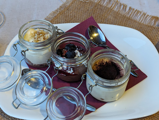 We only received a menu for drinks and the food was offered to us. Everything was amazing but the deserts (the three jars) were out of this world. I know that one was tiramisu, I forgot what the others were, but OMG.