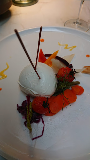 The meal was really delicious and original, we were served fast. Both red wines glasses available were good and went well with the dishes. The meat was perfectly cook. The place was beautiful (but quite cold) with a nice atmosphere. Toilets were clean. The waitress was very nice! A very good discovery!!...