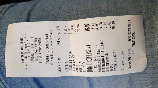 Read moreLa trattoria tre spade e situata a Correggio provincia di Reggio Emilia ..E una trattoria molto conosciuta la cucina e tipica l'ambiente informale e i proprietari sono troppo simpatici .Naturalmente per cenare bisogna soprattutto prenotare ..La parte più bella della serata e quando ti vedi portare al tavolo lo gnocco fritto e affettato e subito dopo i tortelli di zucca poi se si vuole ci sono le croccantelle ..le frittatine ..e i ciccioli sempre offerti naturalmente .Ci sono anche dei buoni cappelletti al brodo ..ravioli al radicchio ..tagliata ..tortelli al prosciutto ..patate al forno ..polenta e del buon vino a cominciare dal lambrusco ..I prezzi di sera sono sempre nella media come tutte le cene .Per quanto riguarda la giornata di venerdì si può sempre su prenotazione avere pranzo o cena a 15 euro con antipasto emiliano di lerbazzone..e suleda ..tris di gnocchi verdi ..tortelli di zucca ..e tortelli verdi ..torta al cioccolato ..zuppa inglese ..semifreddo allo zabaione ..acqua e caffe .e con 2 euro in più anche un calice di lambrusco..o di vino della casa ..prenotate e cercate di mettervi daccordo vedrete che ne...